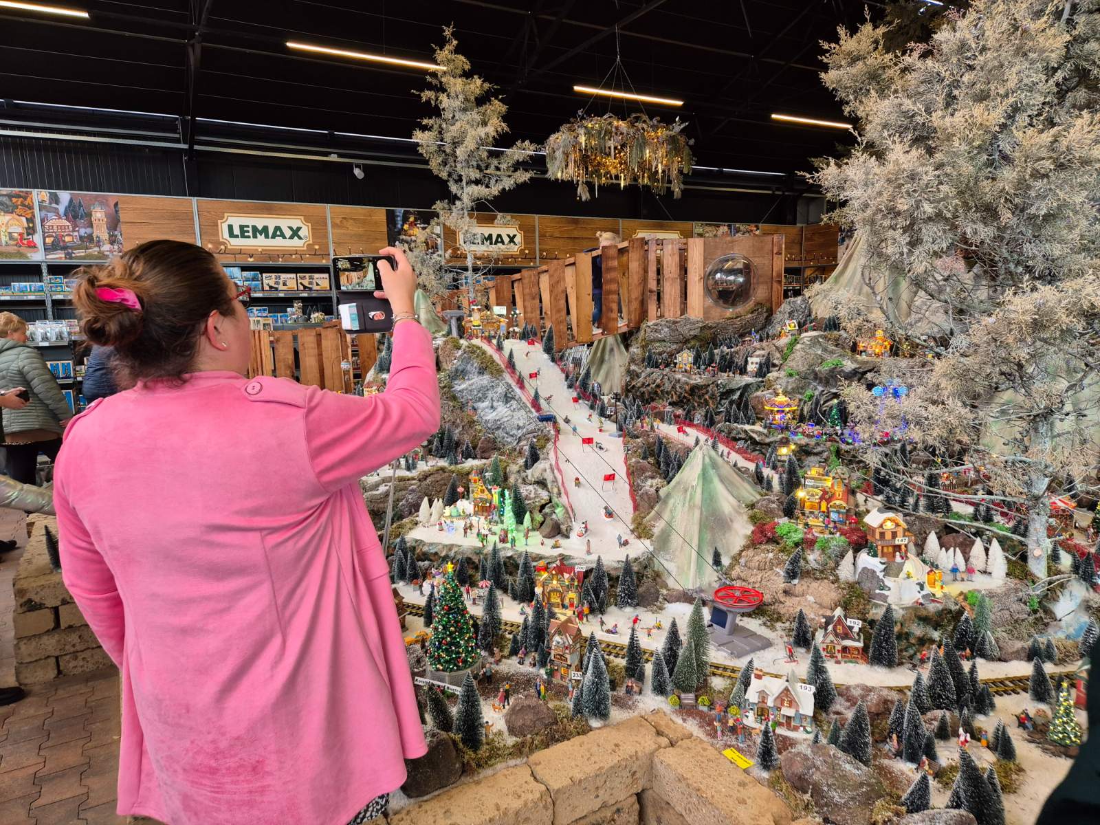 Na de koffie gingen we naar de afdeling waar we Lemax, Santaville, LuVille en natuurlijk MyVillage konden vinden. In het kerstdorp was ook zeker rekening gehouden met de kinderen. Er was een grot onder het kerstdorp door en ze konden door het kerstdorp glijden.